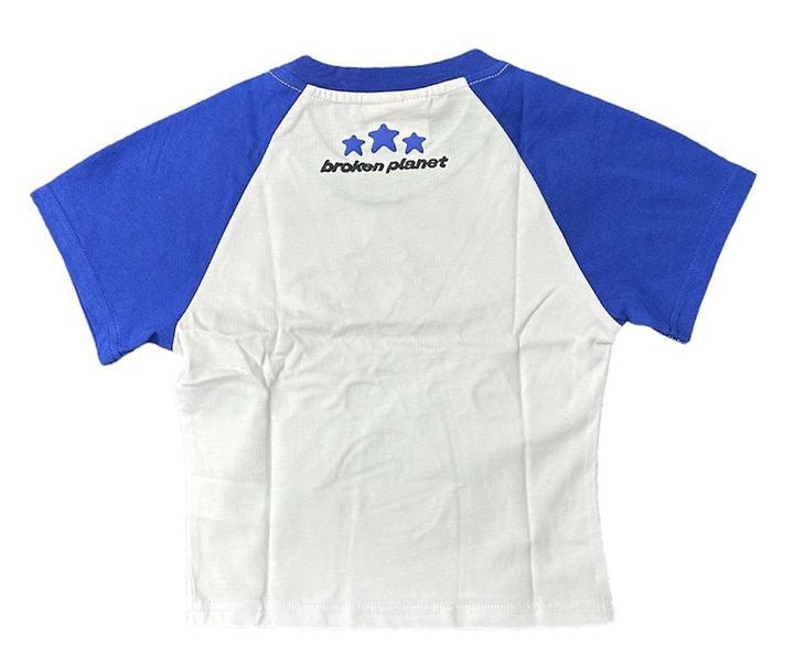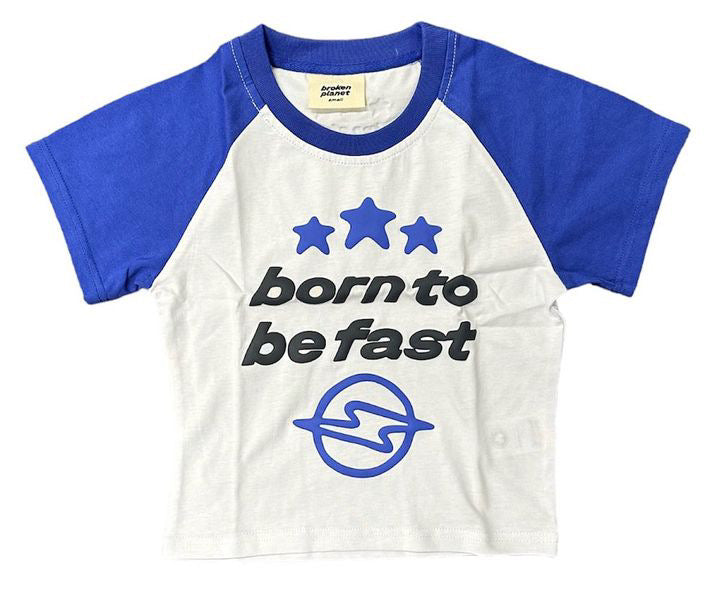Women’s Broken Planet ‘Born To Be Fast’ Baby Tee (White/Blue)